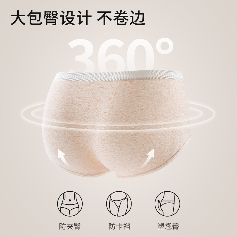 头健康加宽 纯色棉质提臀三角裤 5纯棉内裤 女收腹高腰女士抗菌大码