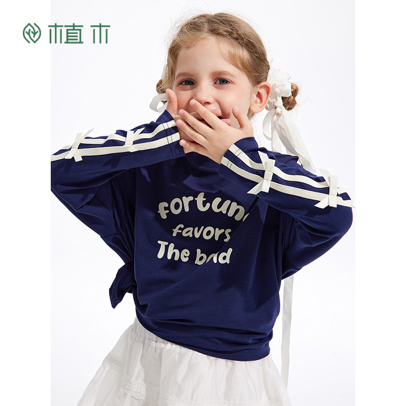 T恤 中大童棉质上衣儿童长袖 植木童装 蝴蝶结女童T恤2025春秋新款