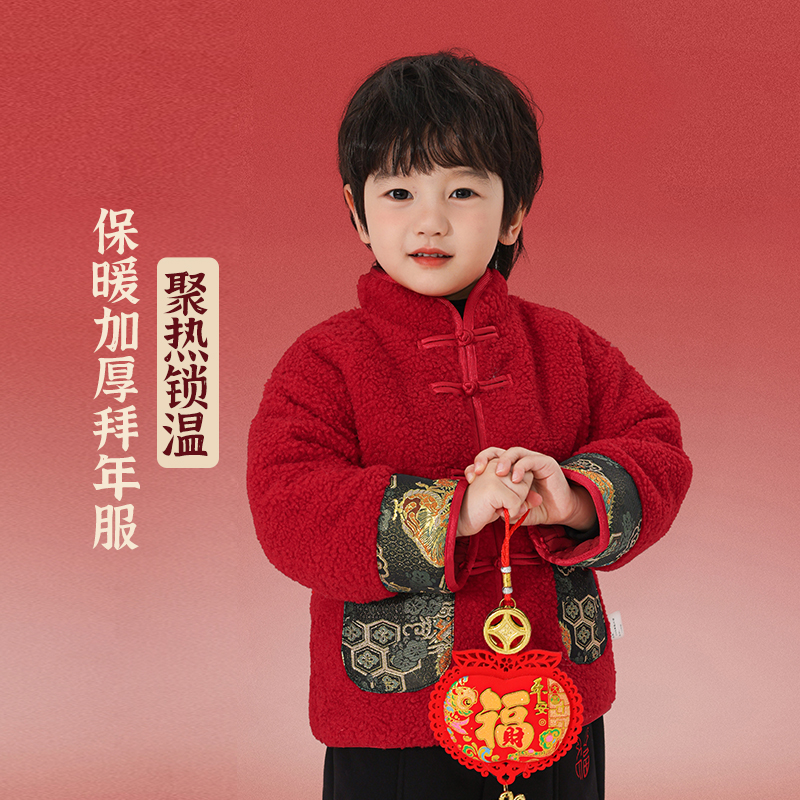 小少爷新中式 唐装 男孩新年装 男童拜年服儿童过年喜庆衣服2025新款
