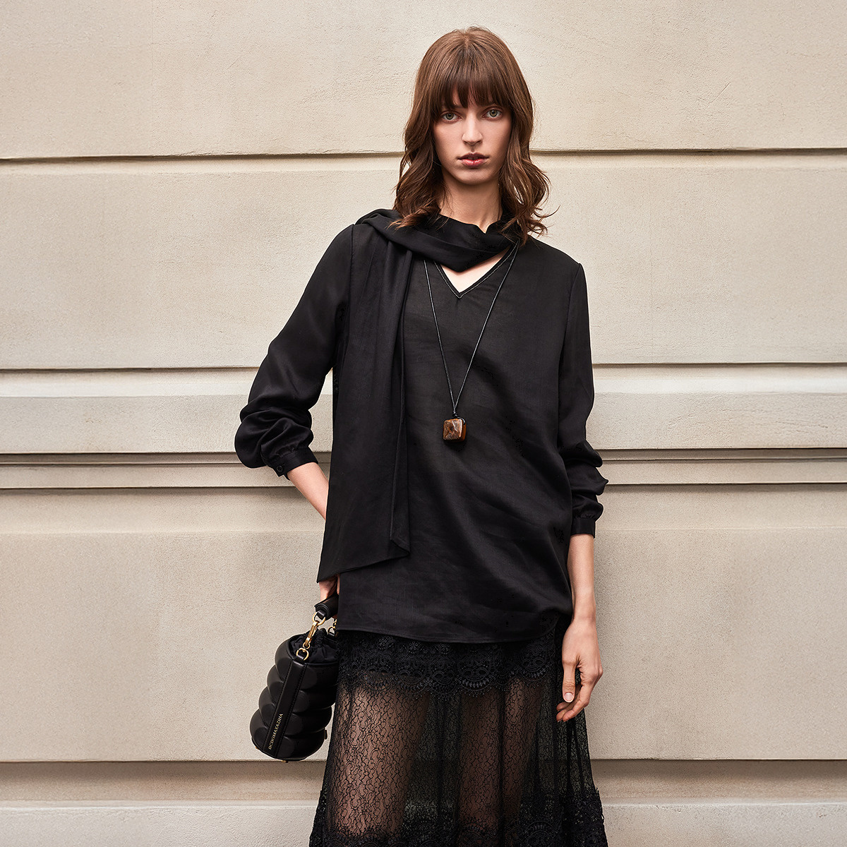 飘带领上衣外套衬衫 百搭宽松高级感长袖 女 优雅气质时尚 BCBG新款