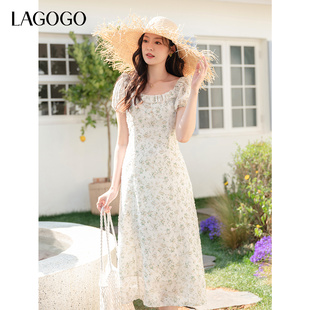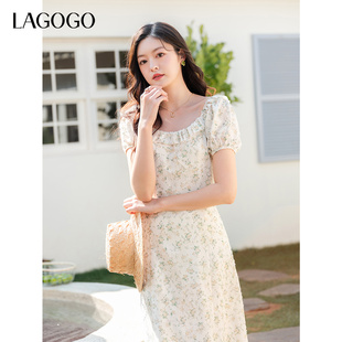 连衣裙 灯笼袖 LAGOGO荷叶边度假显瘦碎花裙女拉谷谷2025年夏季 新款