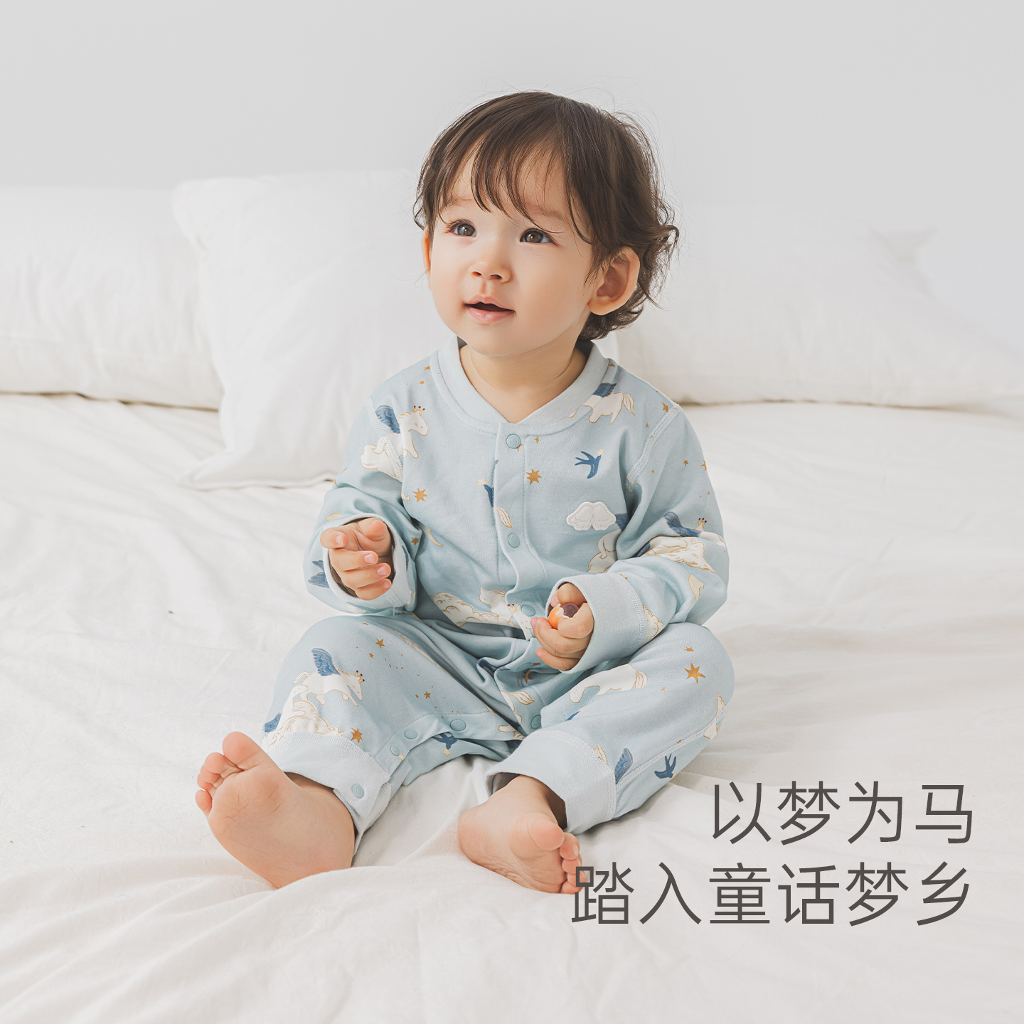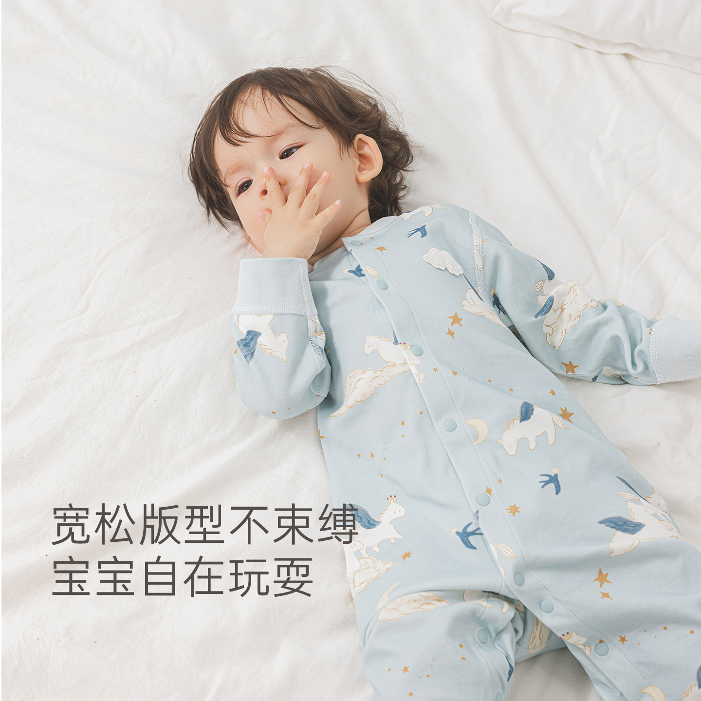 木生棉宝宝长袖 婴儿无骨爬爬服莱赛尔哈衣居家服睡衣 连体衣春秋季