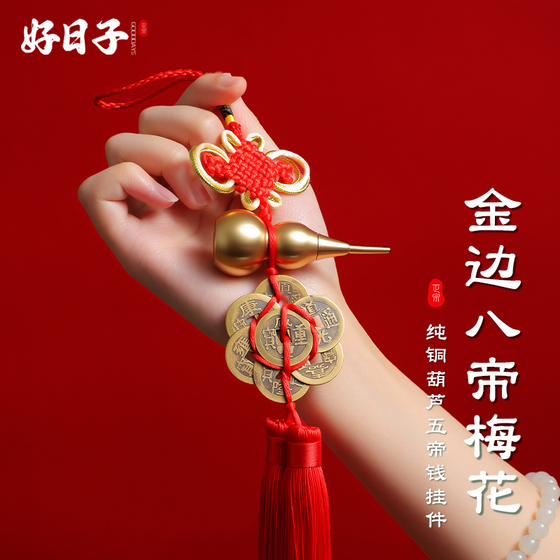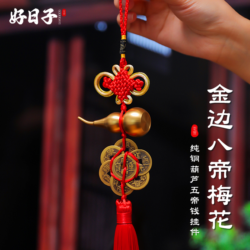 2025新款 汽车后视镜挂饰五帝钱平安符车内铜钱葫芦车载中国结挂件