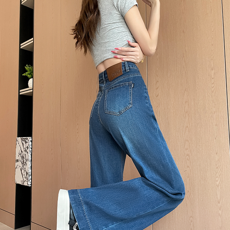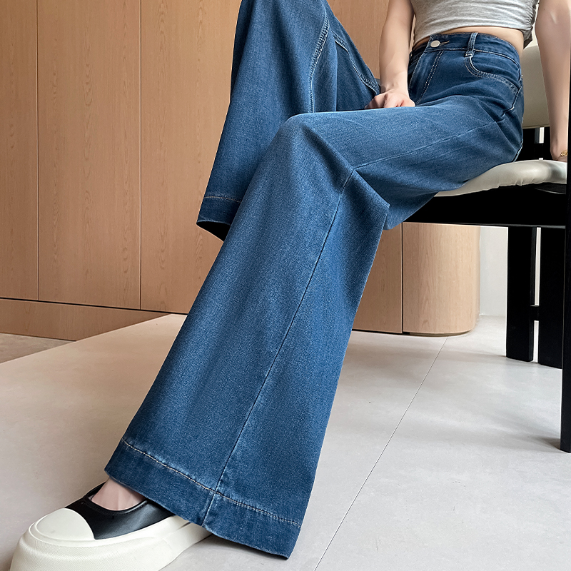 深蓝色宽松垂感百搭不贴腿冰丝喇叭裤 薄款 子 女夏季 微喇天丝牛仔裤