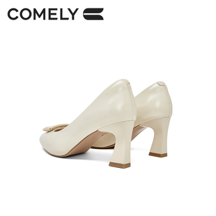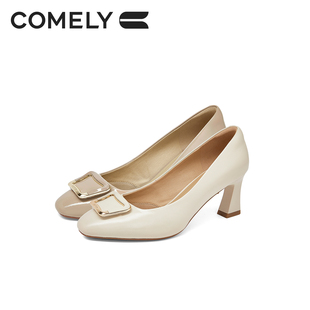 方头气质通勤浅口单鞋 康莉2025秋季 女粗跟真皮法式 高跟鞋 商场新款