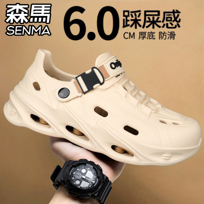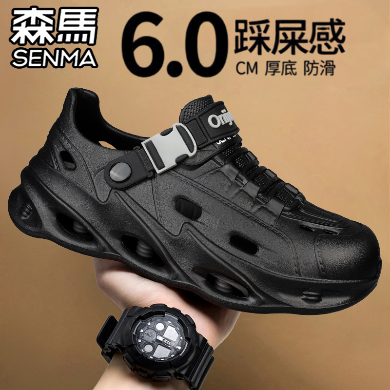 户外钓鱼漂流沙滩凉鞋 森马洞洞鞋 外穿防滑踩屎感全包拖鞋 夏季 男款