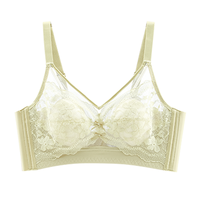 蕾丝无钢圈文胸罩 大胸显小聚拢收副乳法式 兔耳杯内衣女夏季 超薄款