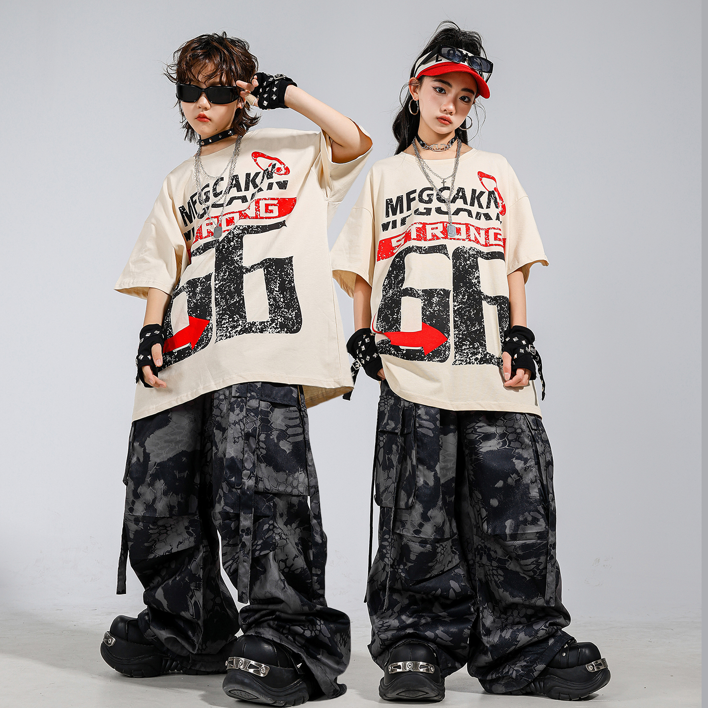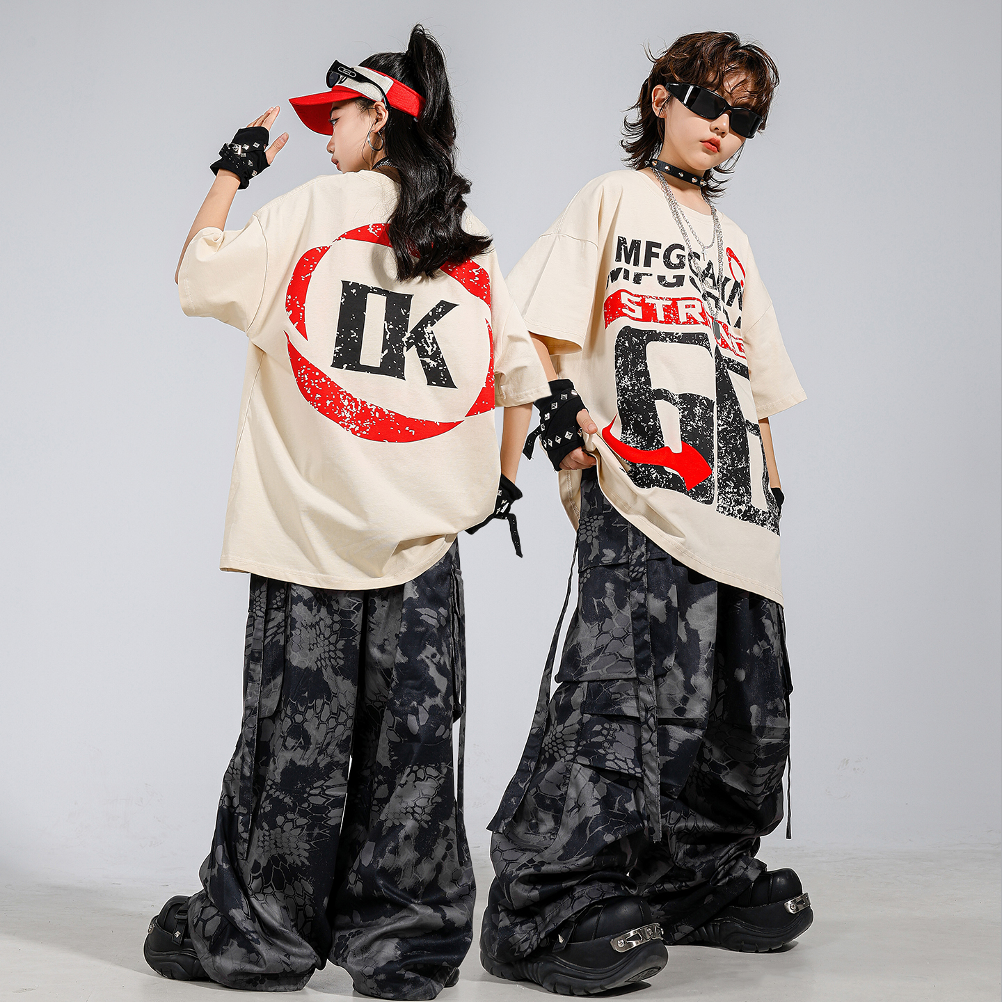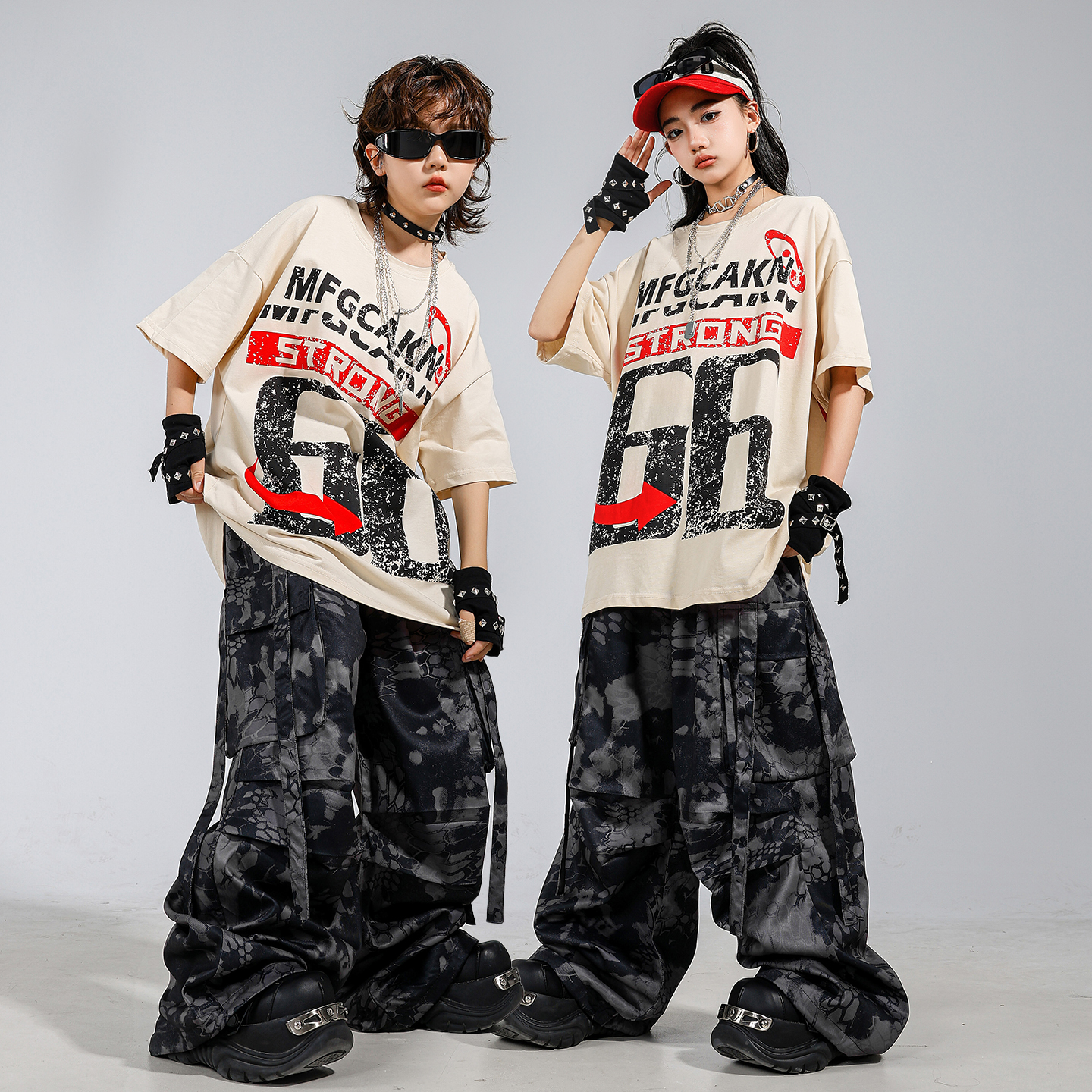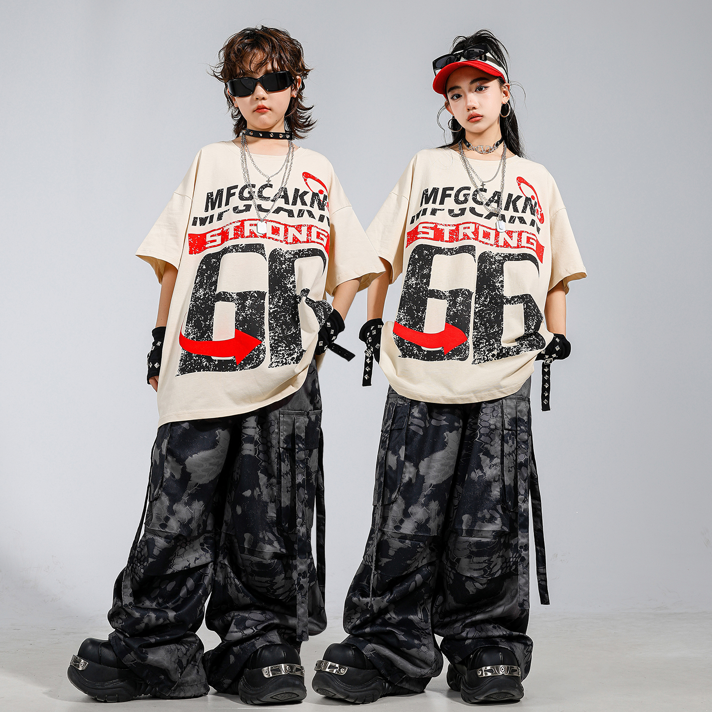 女童爵士舞演出服装 裤 工装 儿童街舞潮服男童嘻哈风酷帅表演服夏季