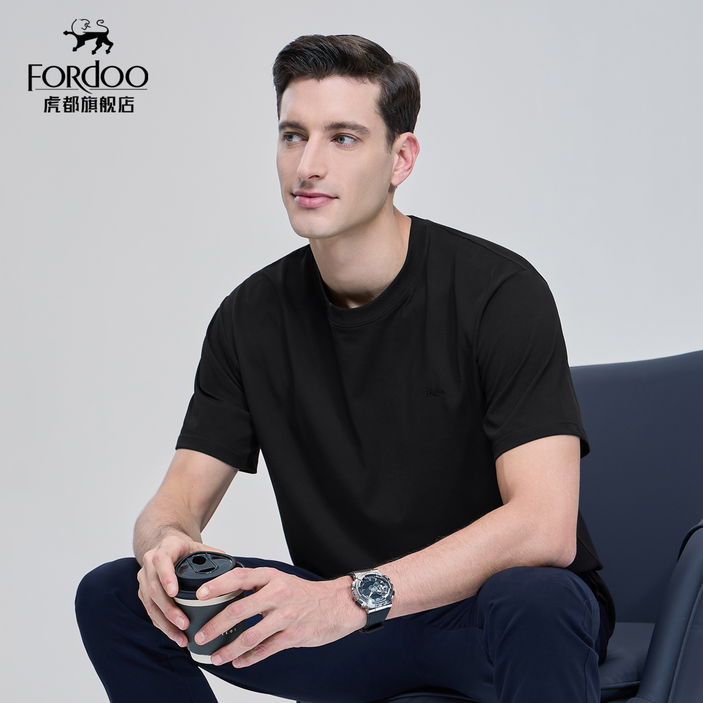 T恤男款 虎都短袖 夏季 新款 商务休闲圆领上衣 五分袖 含蚕丝刺绣