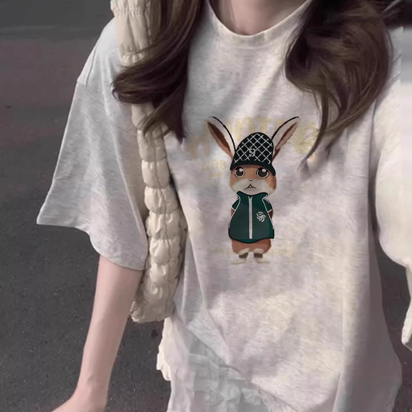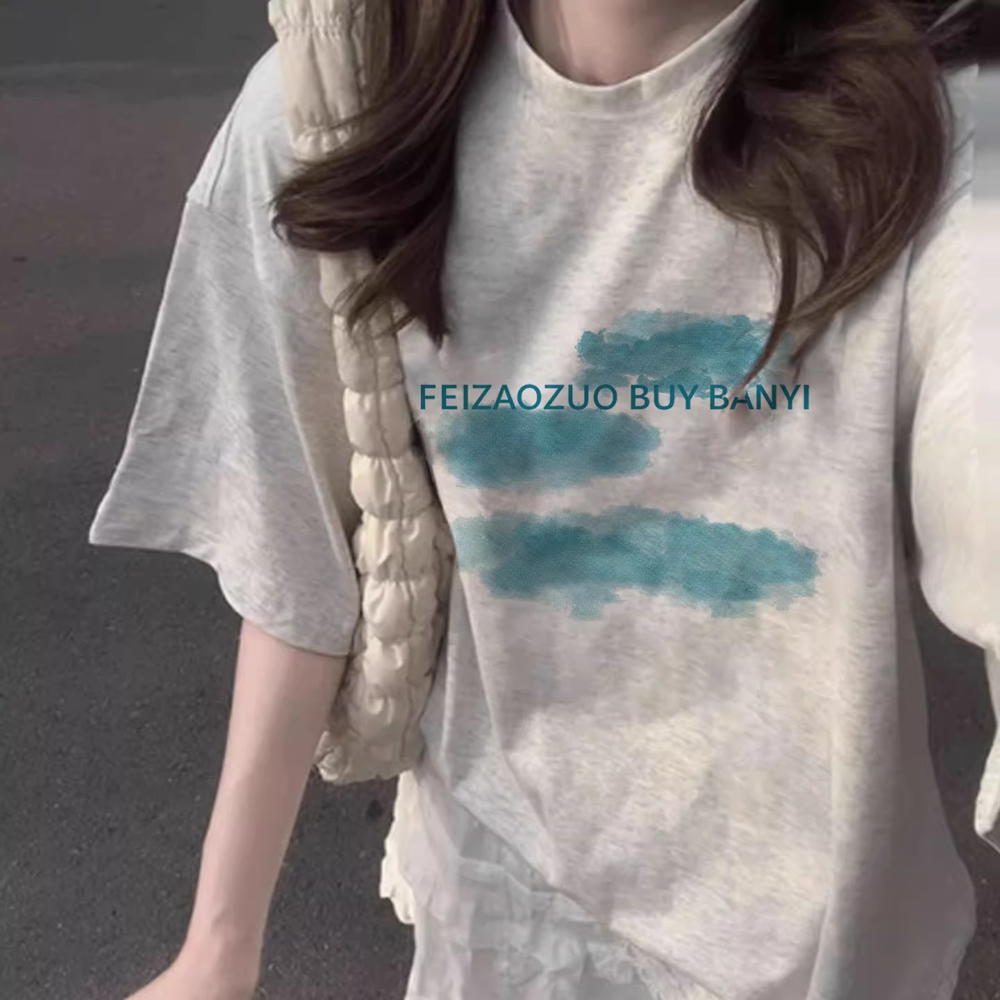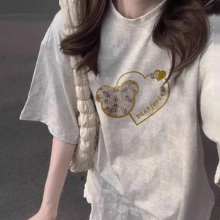 t恤女装 宽松上衣oversize美式 2025新款 夏季 穿搭 爆款 灰色纯棉短袖