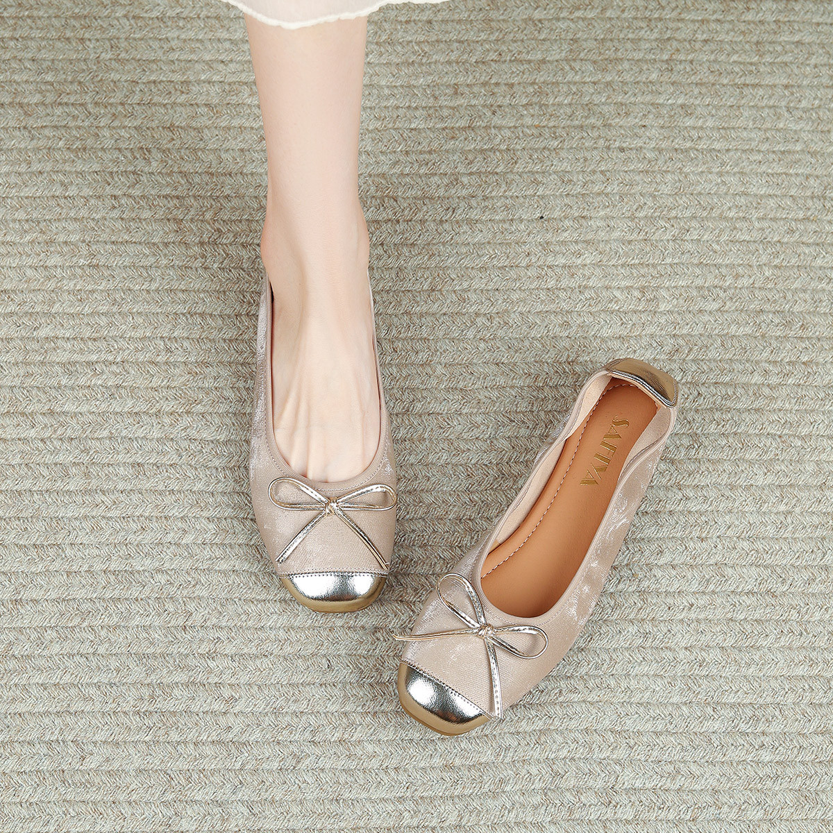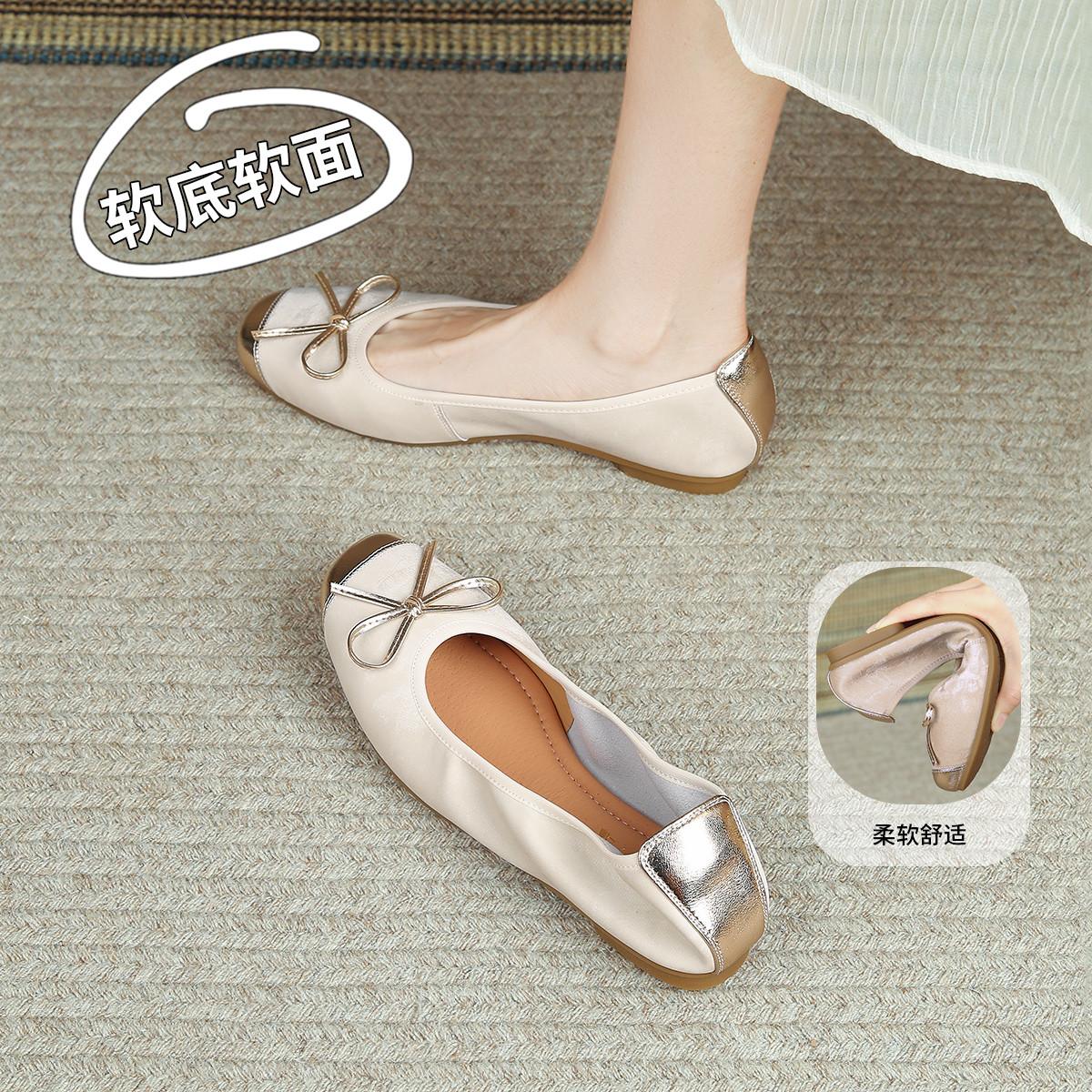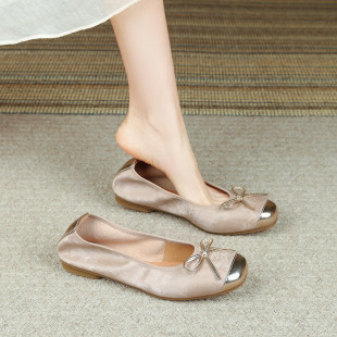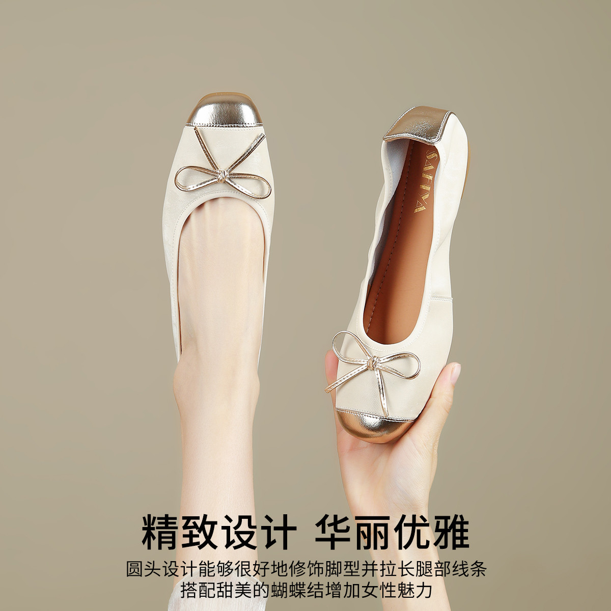 温柔风配裙子豆豆鞋 新款 女2024秋季 星期六真皮平底蝴蝶结浅口单鞋