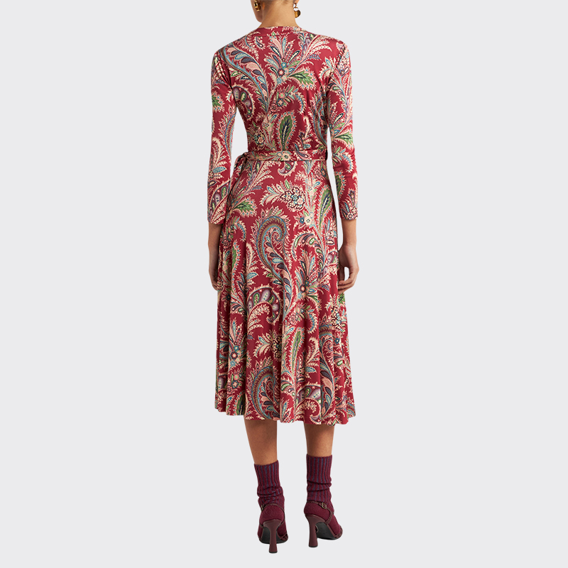 型花卉佩斯里花纹裹身V领七分袖 常规版 连衣裙 25秋冬新款 ETRO艾绰