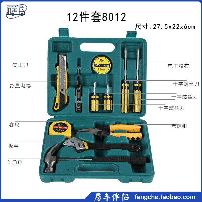 随车五金工具箱 车载家用老虎钳扳手螺丝刀组合工具套装 房车伴侣