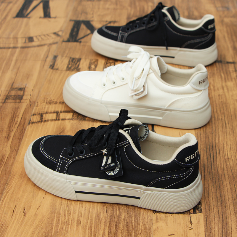 女2025秋季 软底黑色运动鞋 新款 薄款 子 透气厚底休闲板鞋 人本帆布鞋