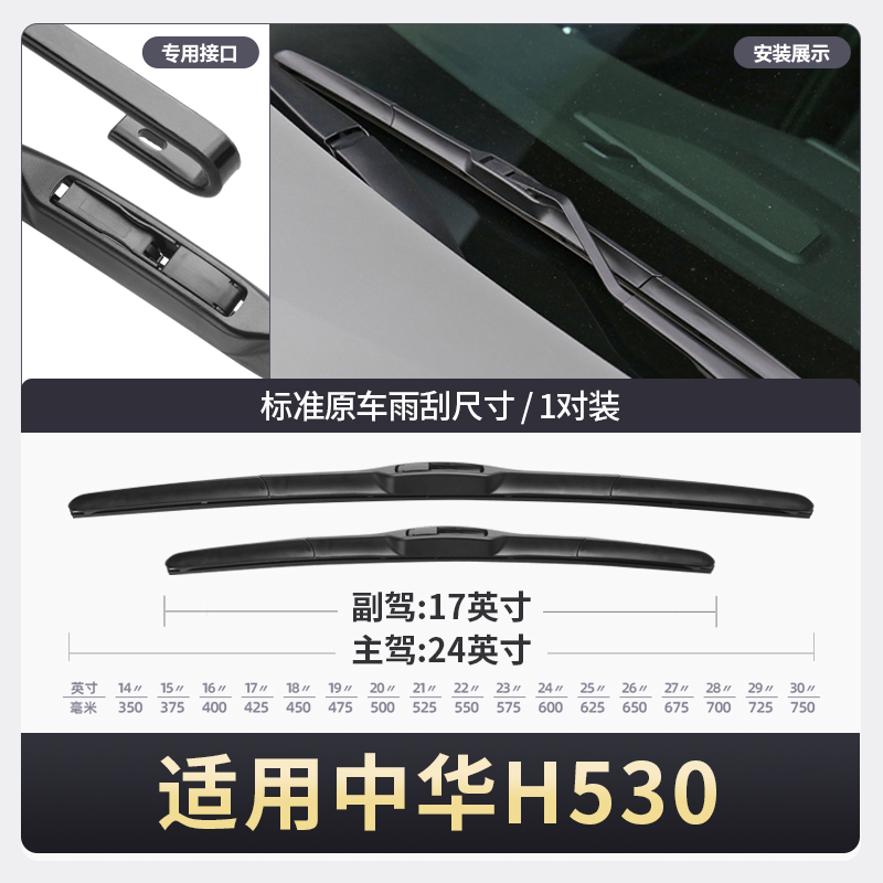 适用中华H530雨刮器12款 华晨汽车无骨胶条配件用品雨刷片 11年原装