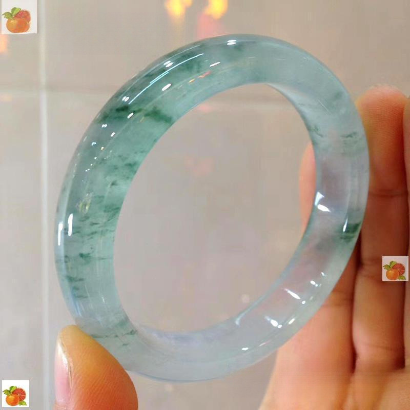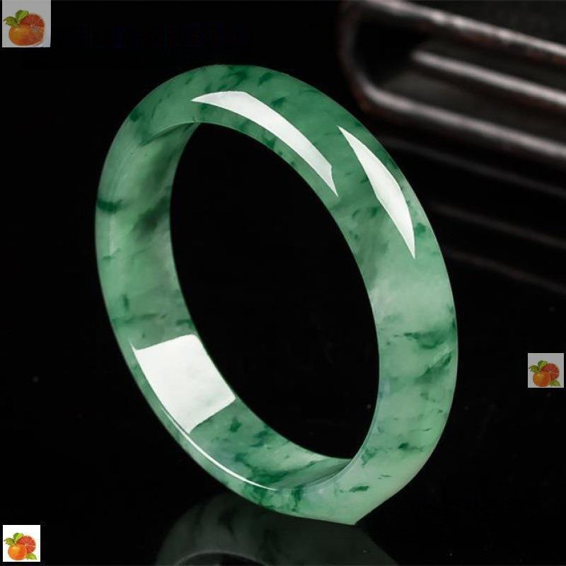 清澈非洲翠独龙玉手镯阳绿飘花女款 老坑玉石镯子宽条美人镯送礼