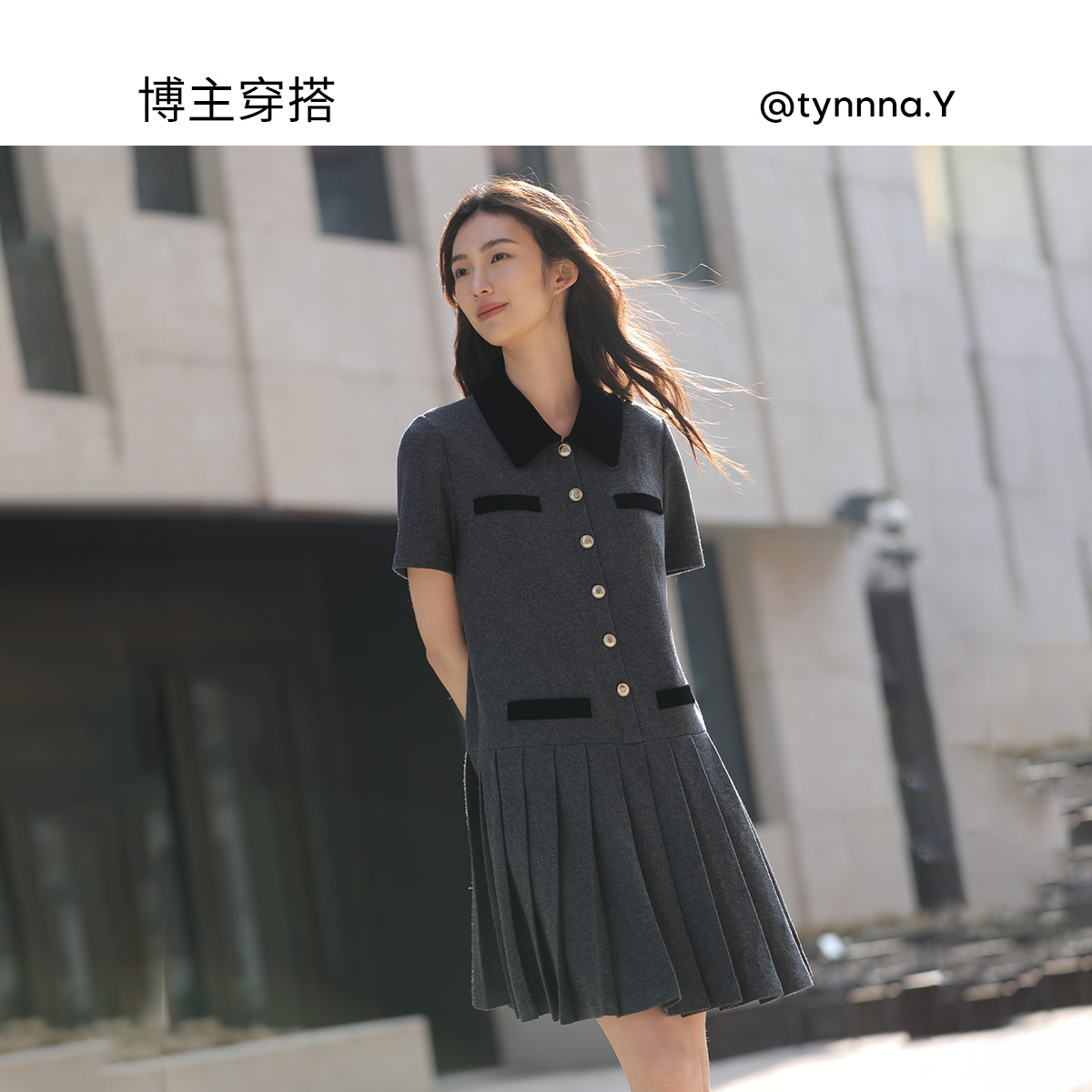 好看显瘦收腰长裙春 新款 阔色灰色短袖 松弛通勤穿搭连衣裙女25秋季