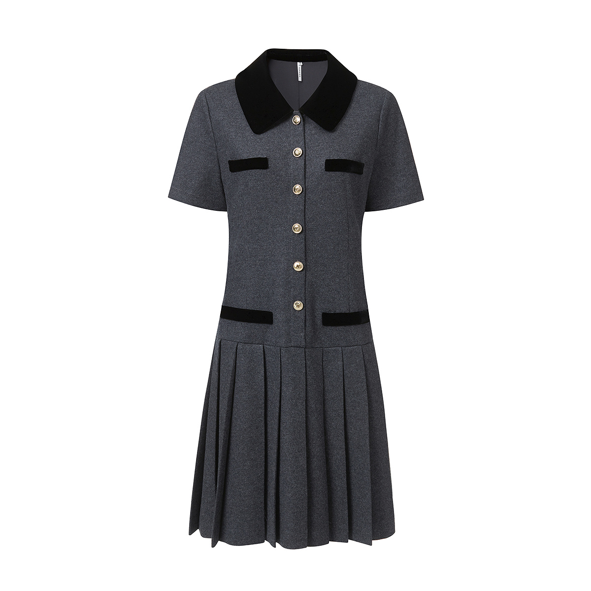 欧洲站港风高级感独特假两件百褶连衣裙法式 复古小个子收腰小黑裙