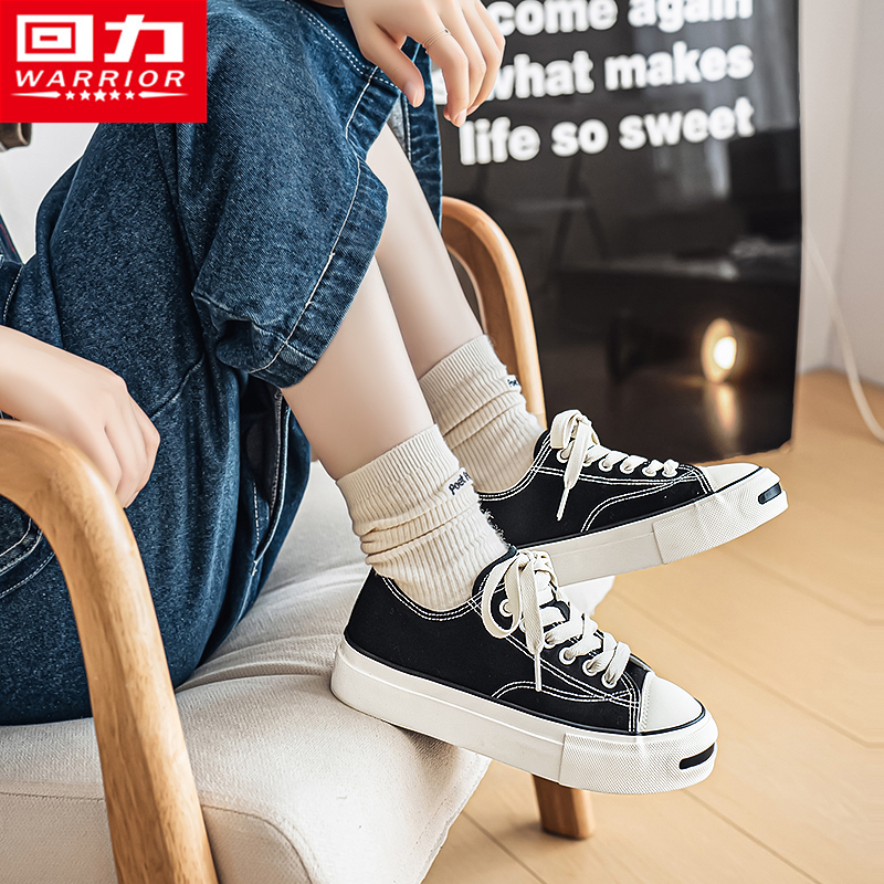 休闲低帮情侣板鞋 回力帆布鞋 透气厚底开口笑小白鞋 秋季 女2025新款