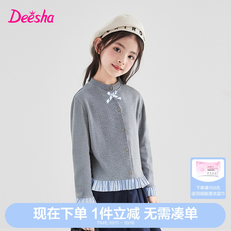大童女孩儿童时尚 笛莎官方旗舰童装 新款 秋季 百搭外套 女童针织开衫
