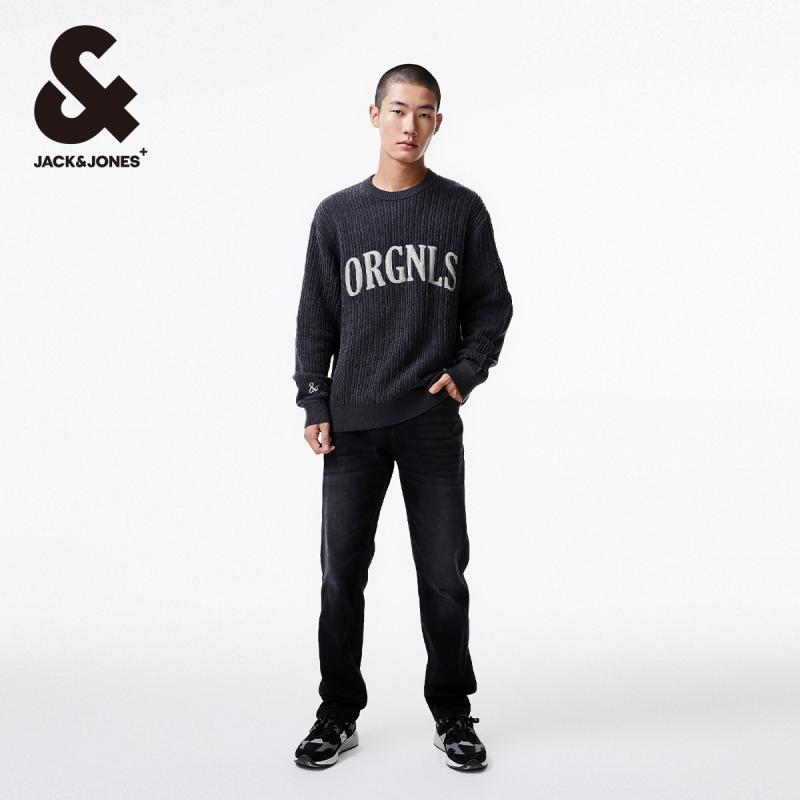 男装 日常休闲百搭拼接罗纹圆领宽松毛衣毛针织衫 新款 杰克琼斯春季