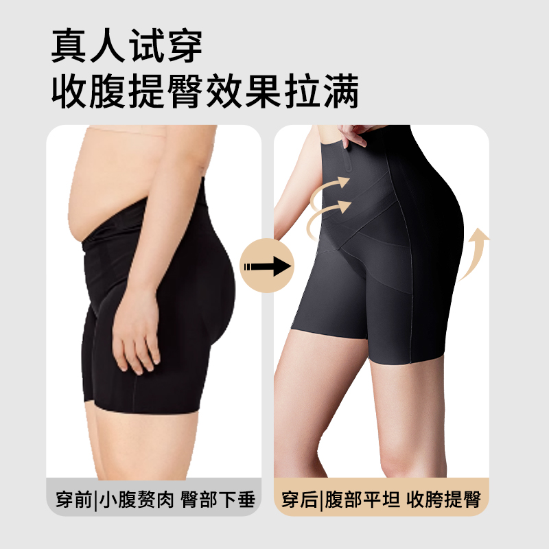 翘臀无痕薄安全裤 猫人塑形收腹提臀裤 女高腰强力收小肚子产后内裤