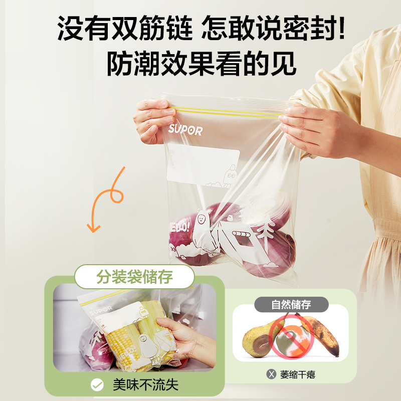 苏泊尔密封袋保鲜袋食品级家用可冷冻冰箱专用加厚自封塑封分装 袋