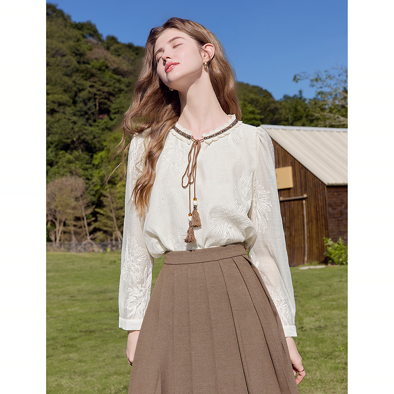 内搭打底洋气小衫 女气质时尚 潮 衬衫 秋冬加绒加厚木耳花边立领长袖
