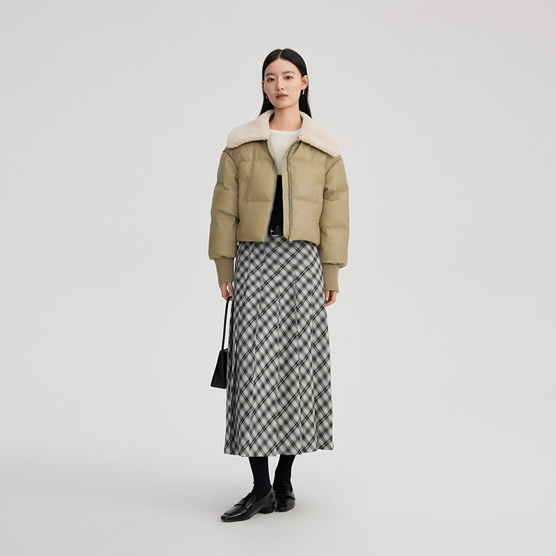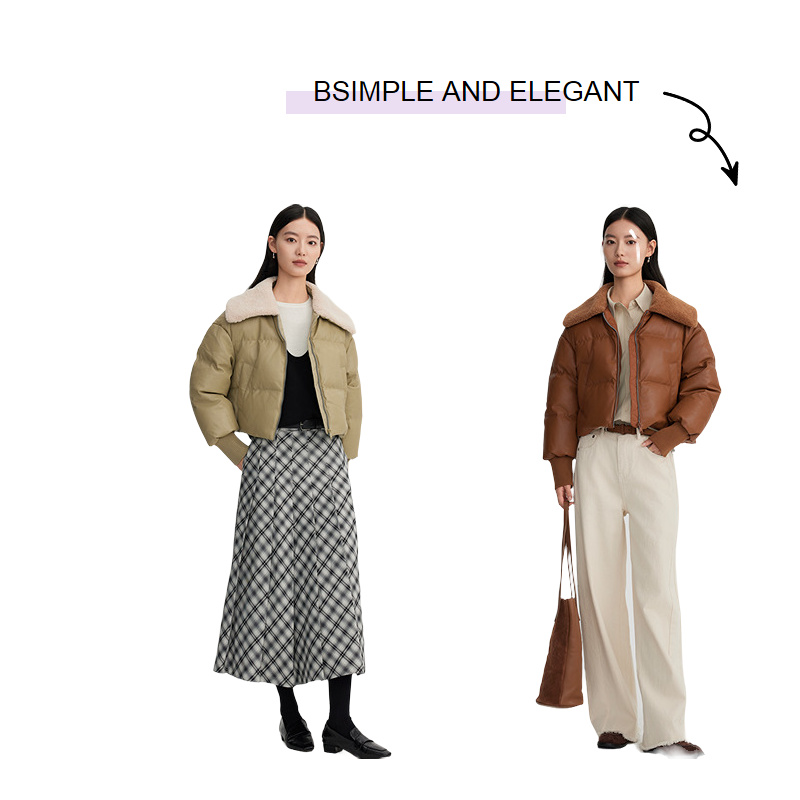 清仓 PU皮女外套复古鸭绒保暖时尚 艾莱依新款 羽绒服仿羊羔毛领短款