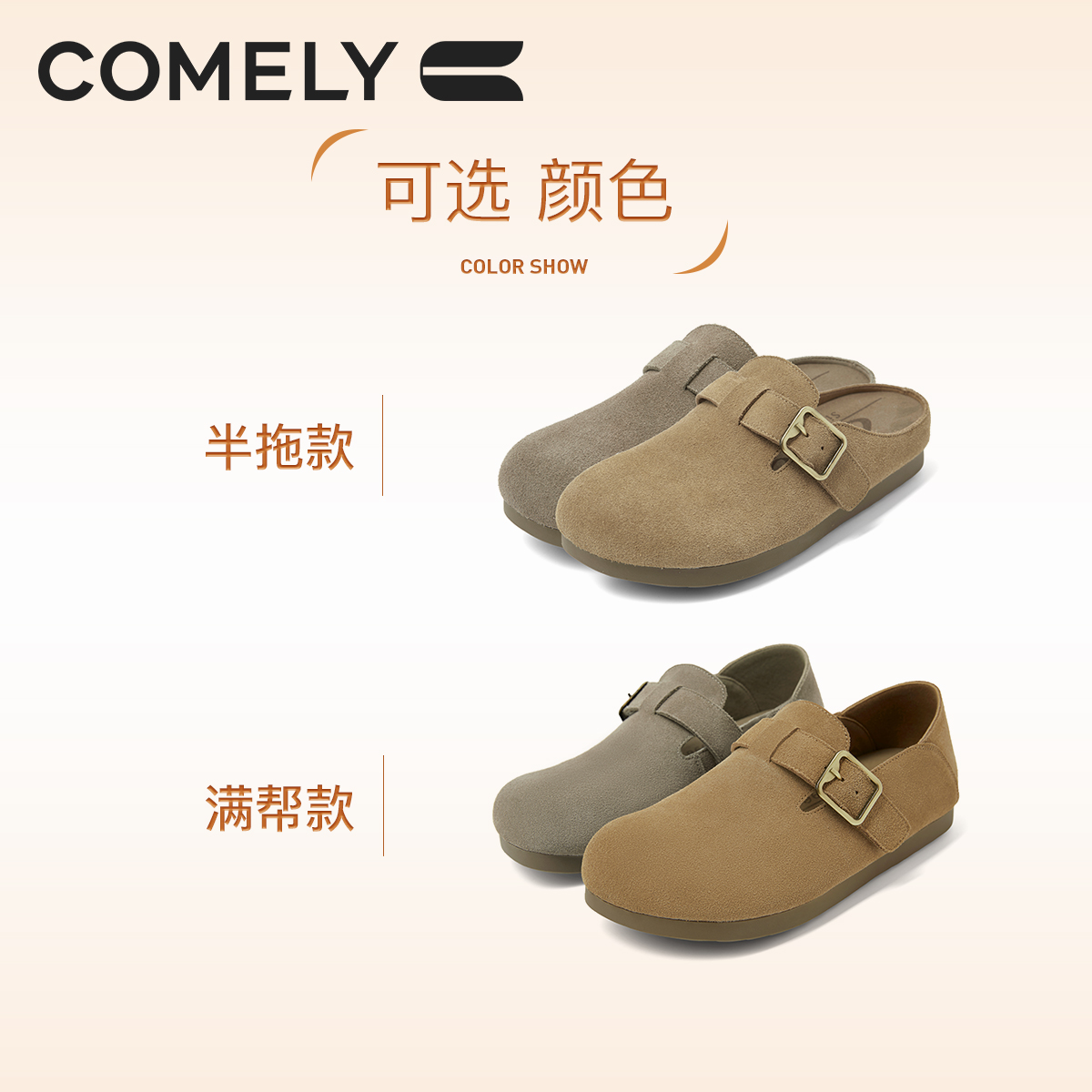 子 平底包头外穿懒人休闲鞋 康莉软底勃肯鞋 半拖女真皮2025春夏新款