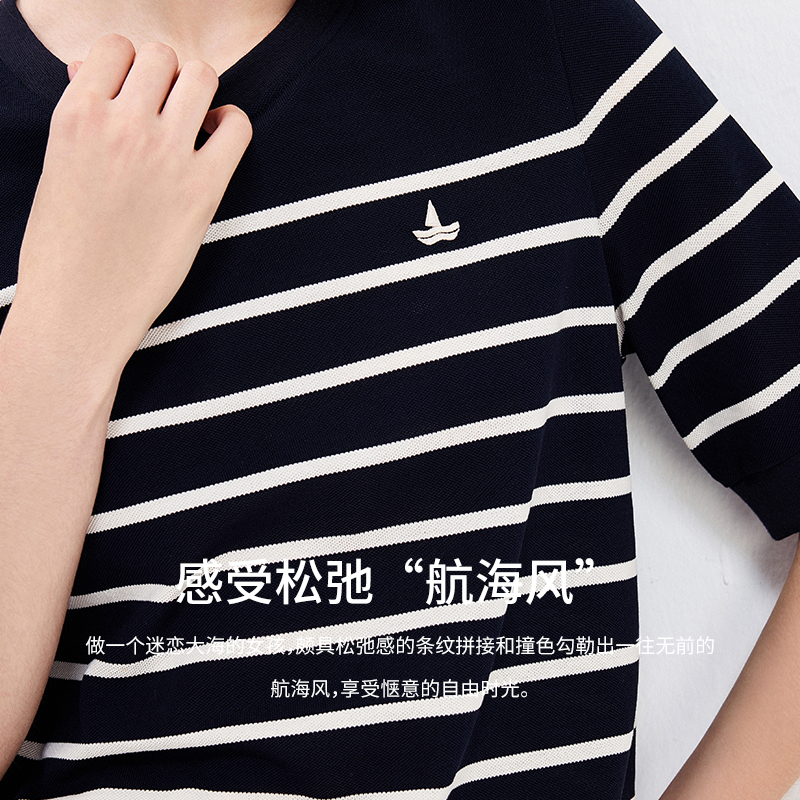 条纹针织T恤女短袖 Navigare意大利小帆船夏季 宽松体恤 明星同款