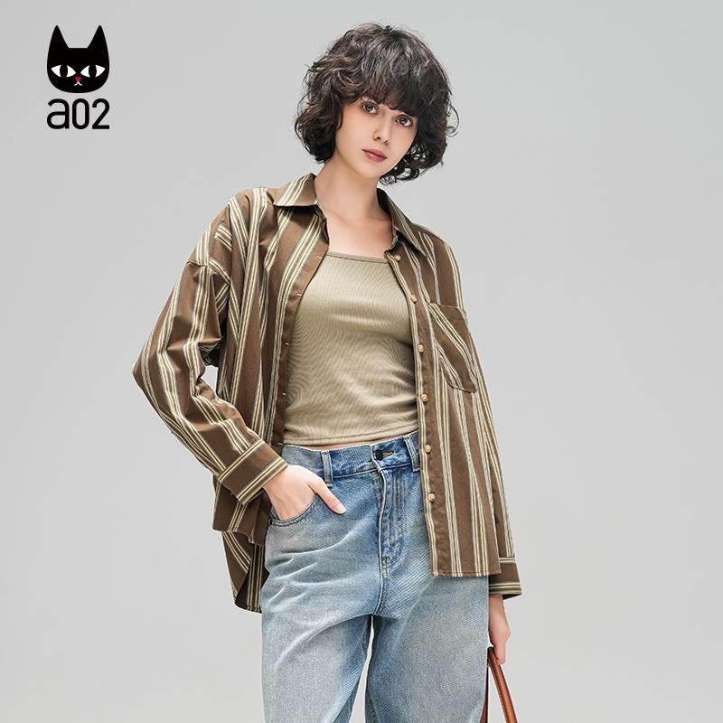 条纹长袖 a02 女上衣2025秋新款 100%棉衬衫 衬衣外套 ET自然系列