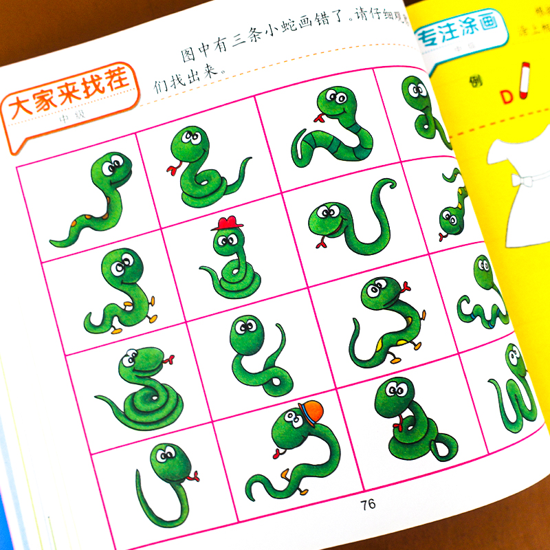 5岁儿童全脑开发专注力训练书宝宝左右脑观察力记忆力思维逻辑游戏书幼儿早教书籍趣味数学图形启蒙找不同走迷宫练练看益智绘本