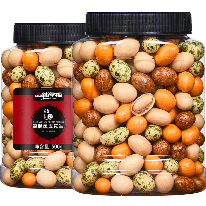花生米下酒菜炒货休闲零食小吃 多味花生500g 三只松鼠_罐装
