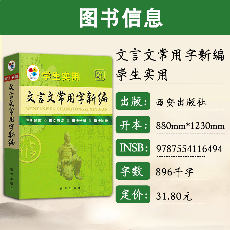 文言文常用字新编学生实用古汉语古代汉语字词初高中文言文学生实用工具书籍汉语典字形溯源课文例证用法辨析语法附录西安出版 社