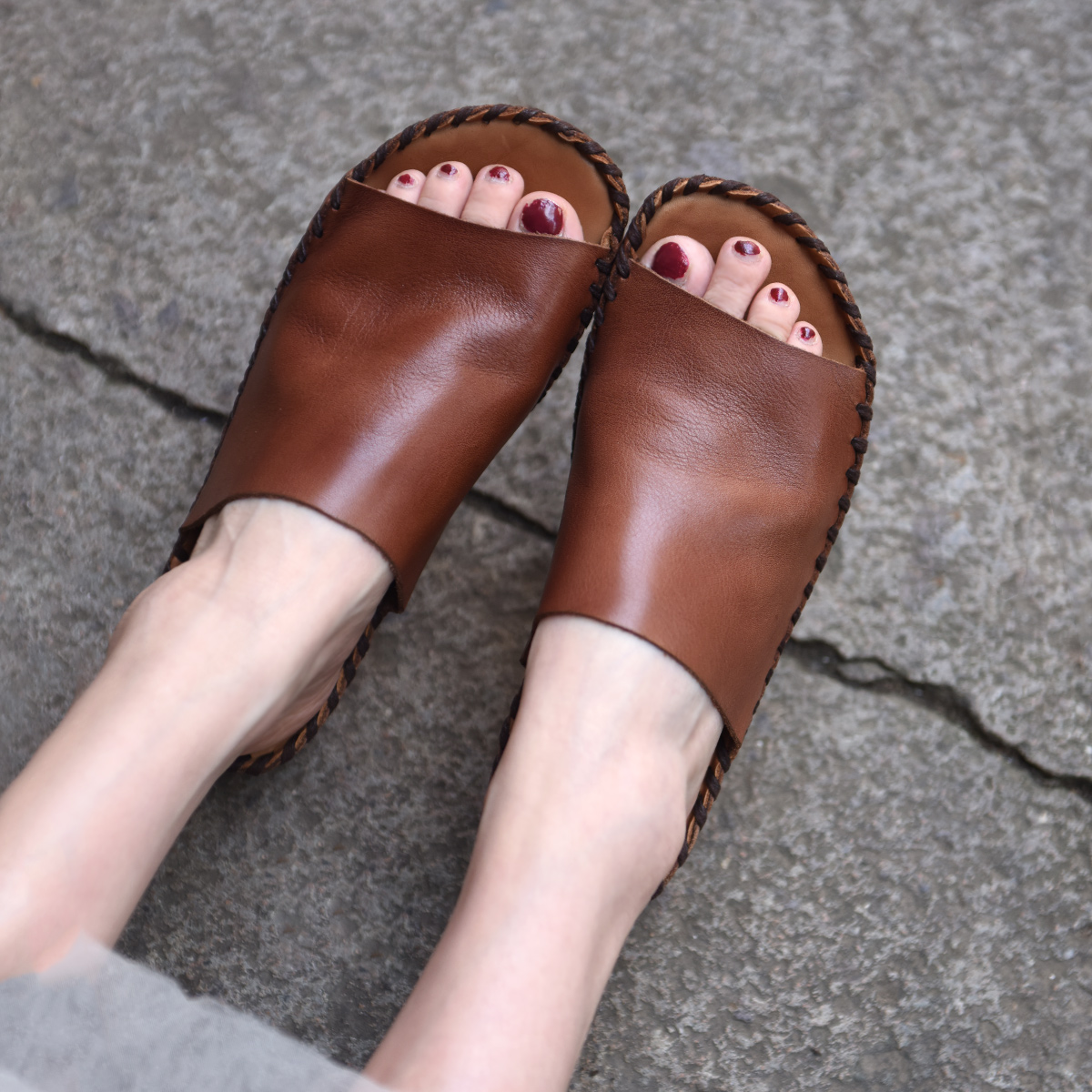 Artmu阿木原创复古一字拖厚底拖鞋 女夏外穿防水台坡跟皮拖新款