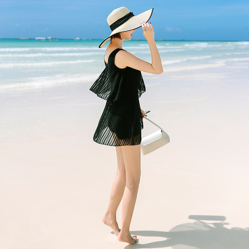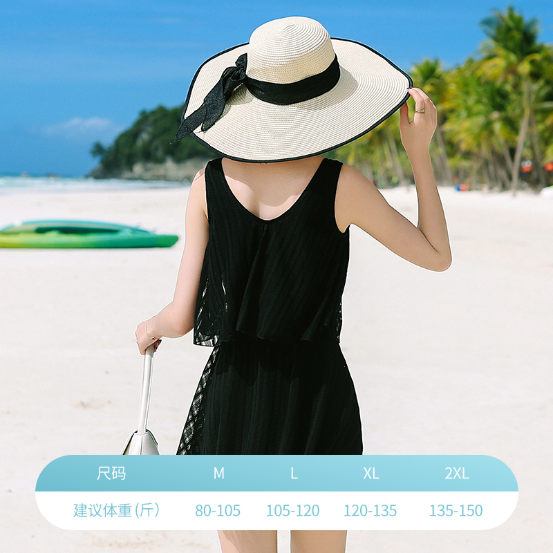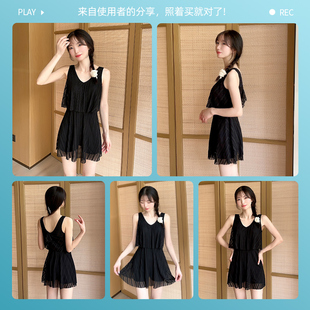 宜肤黑色游泳衣女仙女范保守2025新款 显瘦遮肉小胸聚拢泡温泉泳装