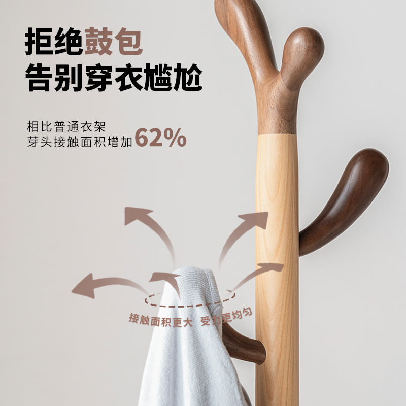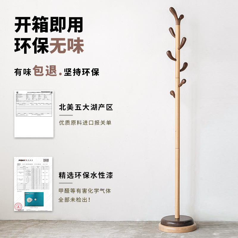 实木衣架落地衣帽架卧室家用挂衣架简易立式 榉木挂衣杆室内挂包架