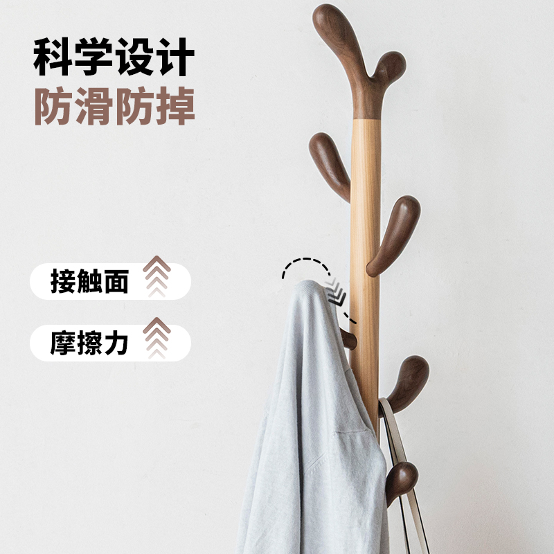 实木衣架落地衣帽架卧室家用挂衣架简易立式 榉木大学生宿舍挂包架