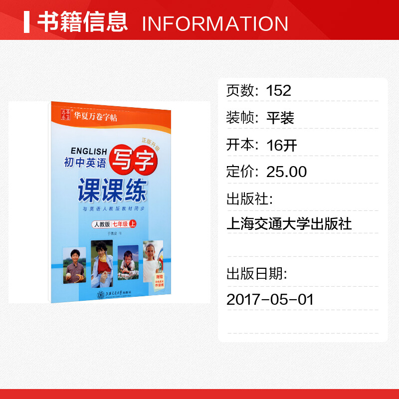 正版 社 初中英语写字课课练 上海交通大学出版 新华书店旗舰店文轩官网 书籍 于佩安 .7年级.上 人教版 新华文轩