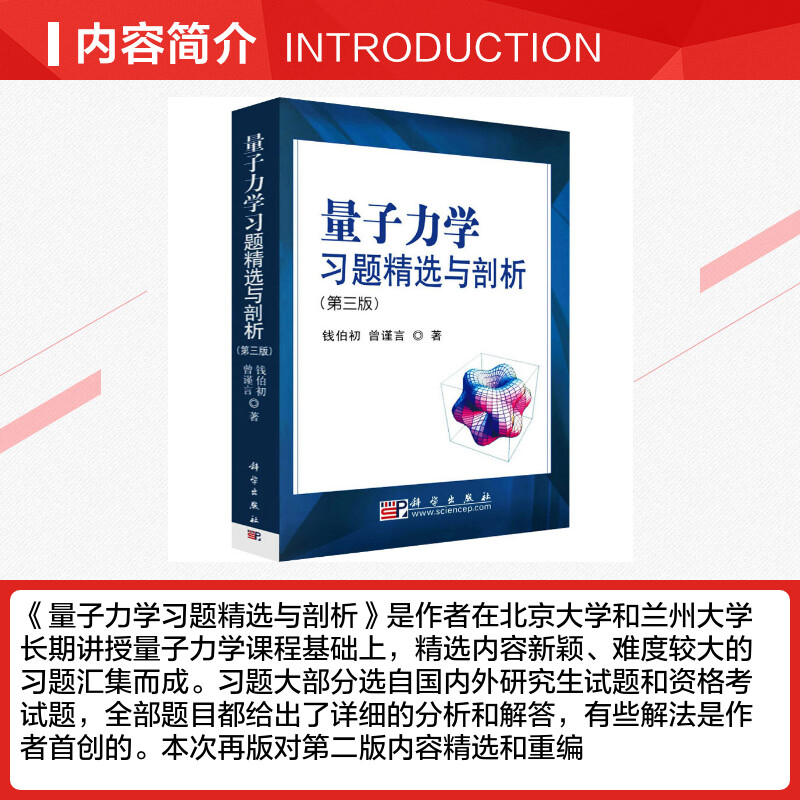 曾谨言 著 科学出版 第3版 社 图书籍 钱伯初 新华书店正版 量子力学习题精选与剖析 大学教材大中专