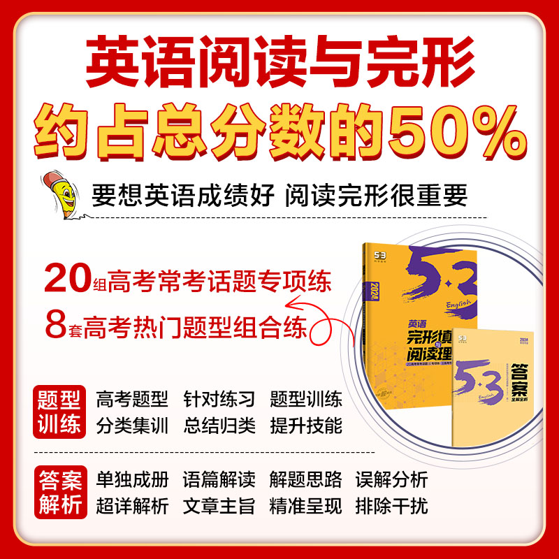 50篇高二新高考适用 53英语完形填空与阅读理解150 5年中考3年模拟2合1组合训练高中英语复习资料 正版 曲一线官方正品