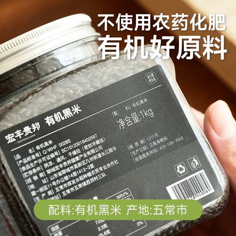 宏丰贵邦东北有机黑米1000g 1罐新米粗粮糙米五谷杂粮官方旗舰店