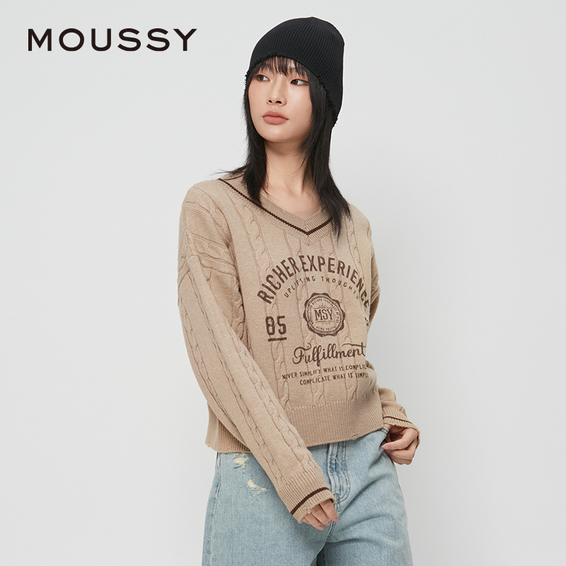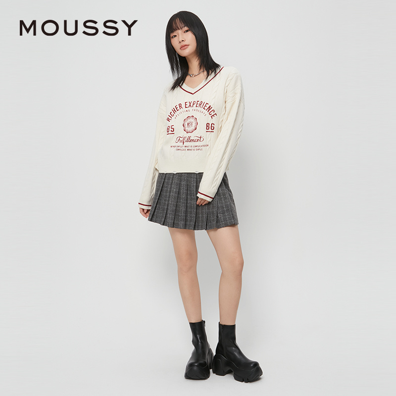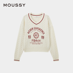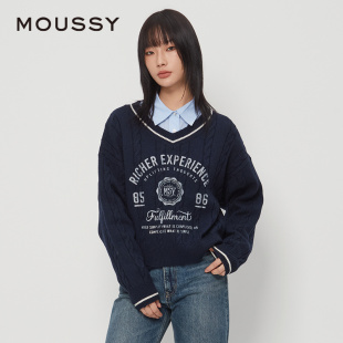 毛衣028HAZ70 MOUSSY 英伦学院风字母V领针织衫 新品 1001 春季