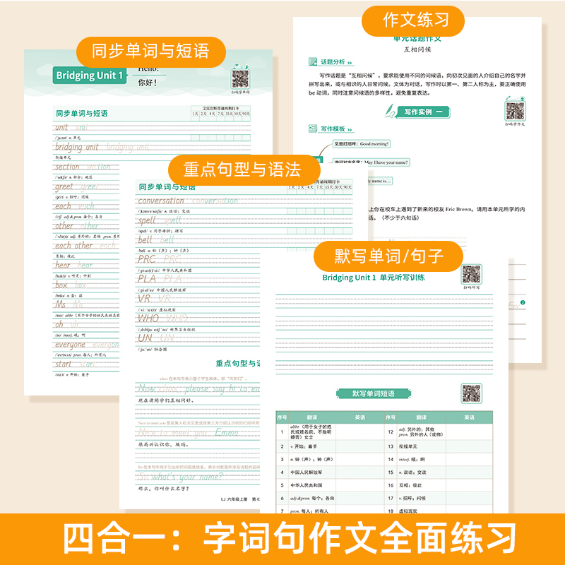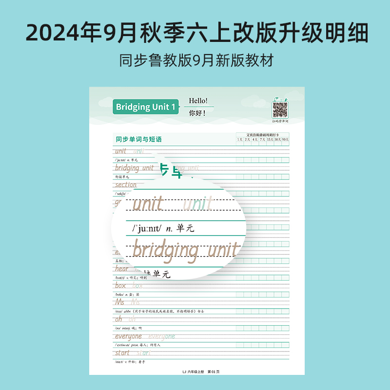 新版 英语教材五四制手写衡水体同步单词句子短语练习听写默写六年级上下册英文作文硬笔临摹描红暑假作业练字帖 初中生山东省鲁教版