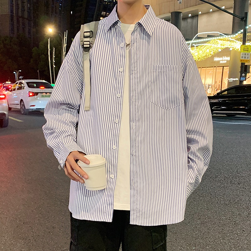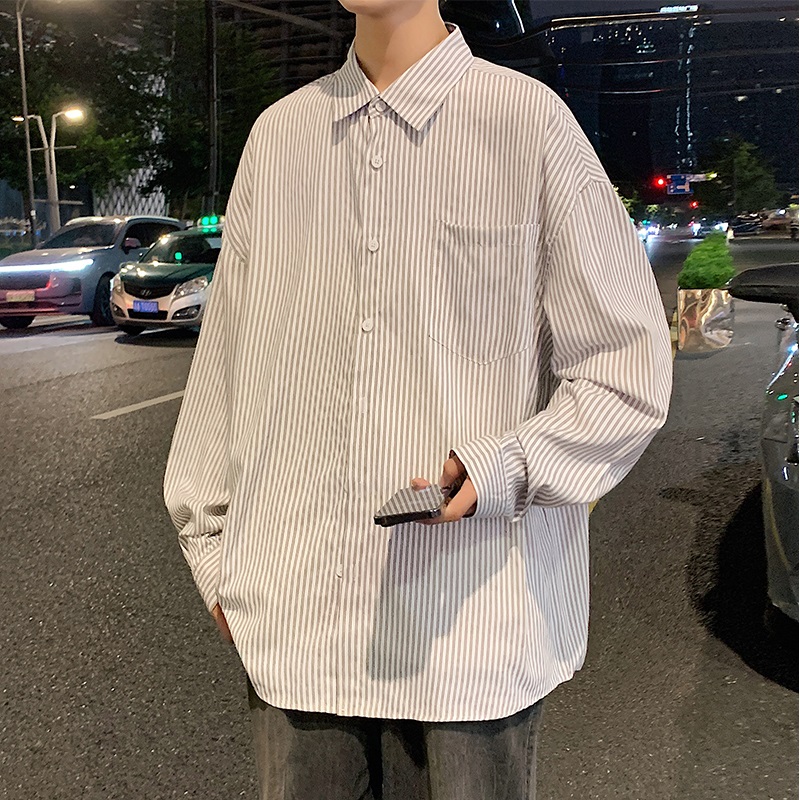 复古宽松休闲长袖 2025秋季 男女美式 潮牌条纹衬衫 衬衣情侣外套 新款