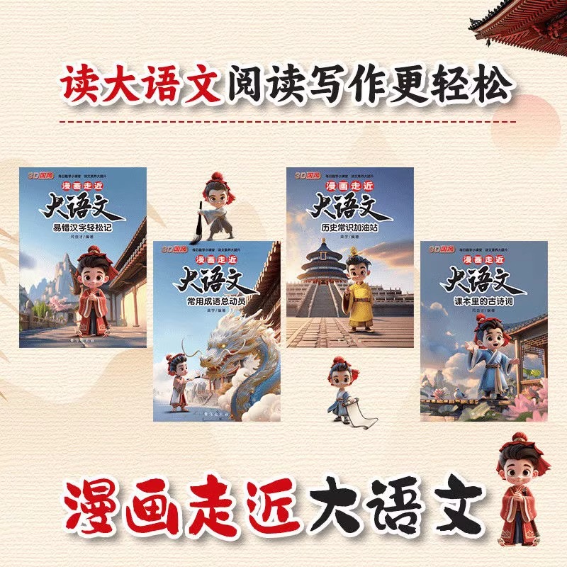 漫画走近大语文全四册正版 3D国风每日趣学小课堂小学生语文素养提升国风之美3D立体漫画成语总动员易错字古诗词轻松记历史常识速记