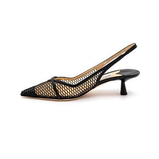 301574 秋冬渔网珍珠配饰女士中跟包头凉鞋 Jimmy Choo