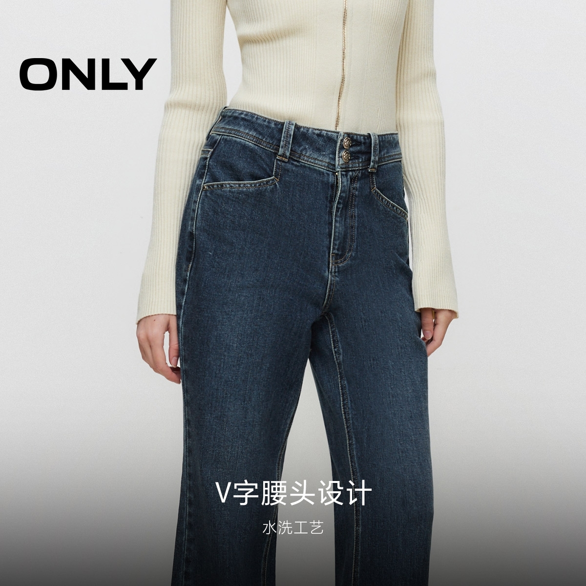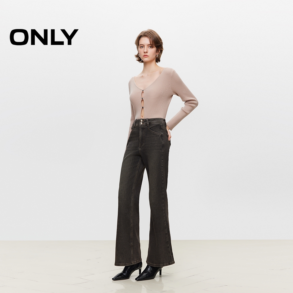 ONLY奥莱 牛仔裤 秋季 长裤 女 简约通勤显瘦高腰喇叭裤