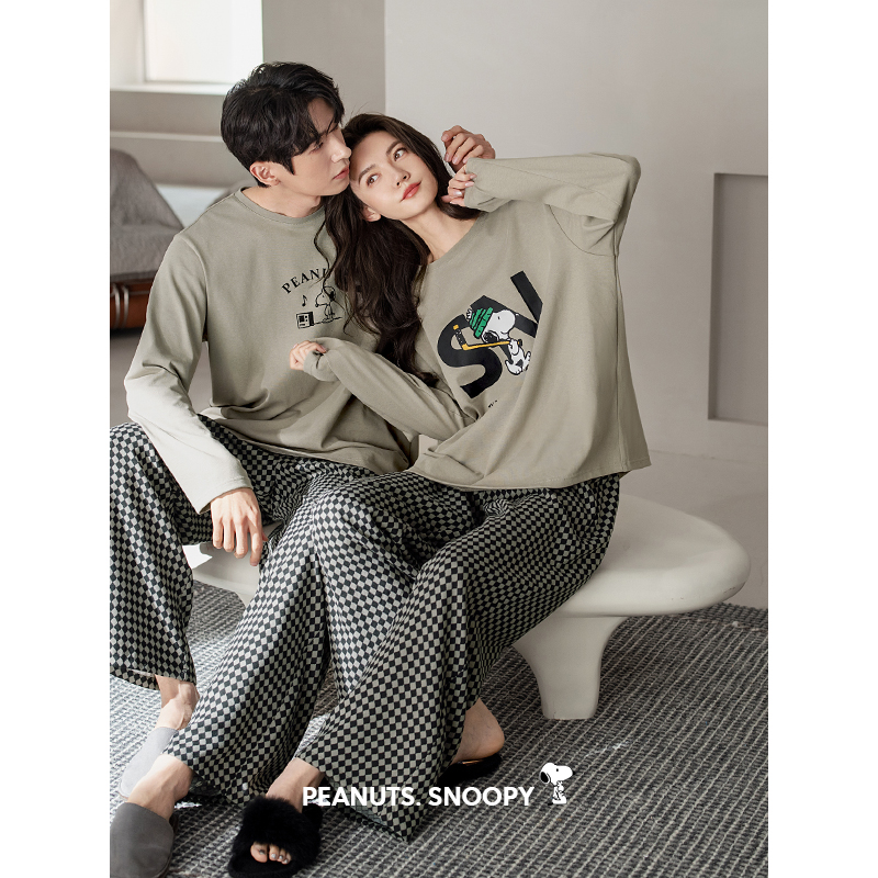 套装 贝妍春秋新款 休闲大码 情侣睡衣女柔软棉史努比家居服男士 长袖
